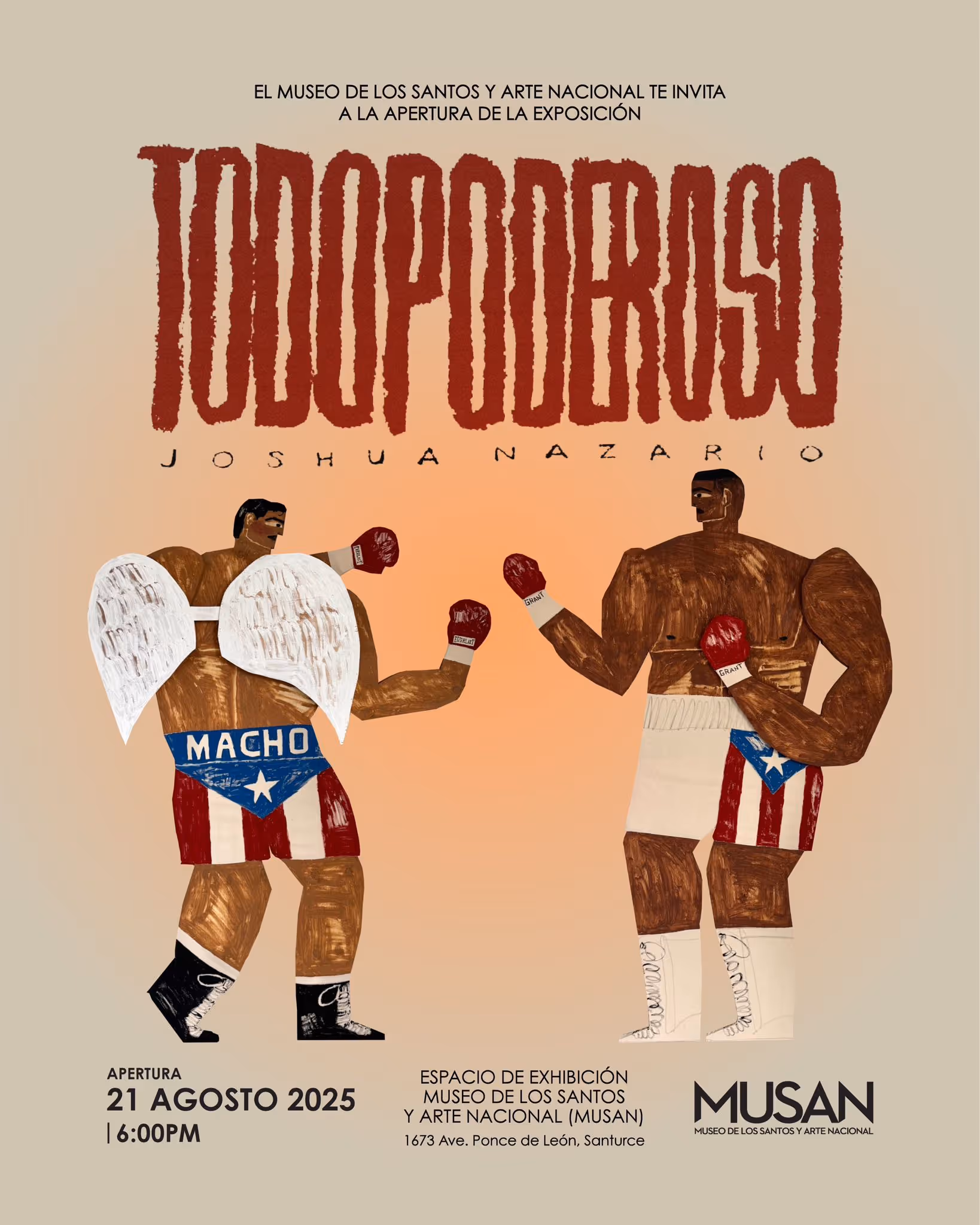 At the heart of the exhibition is a series of twelve saints —twelve illustrious figures now deceased— inspired by the popular saying: “Ningún vivo es santo hasta que muere”.Among them are Héctor Lavoe, Blanca Canales, and Roberto Clemente, represented not as untouchable icons but as real beings whose virtues, struggles, and contradictions still resonate today. Each is portrayed through the quality that most defined them in life, aiming to show those virtues —whether good or imperfect— that make us who we are. In the context of MUSAN, TODOPODEROSO is presented as an invitation to reflect on whom we admire and why: whether it be God, an athlete, a musician, or an ordinary person. It is not about replacing the divine, but about recognizing the extraordinary in the human.