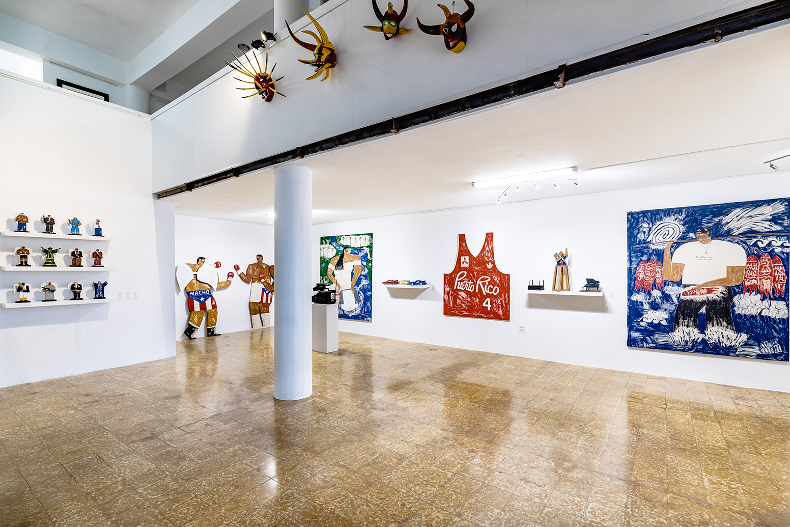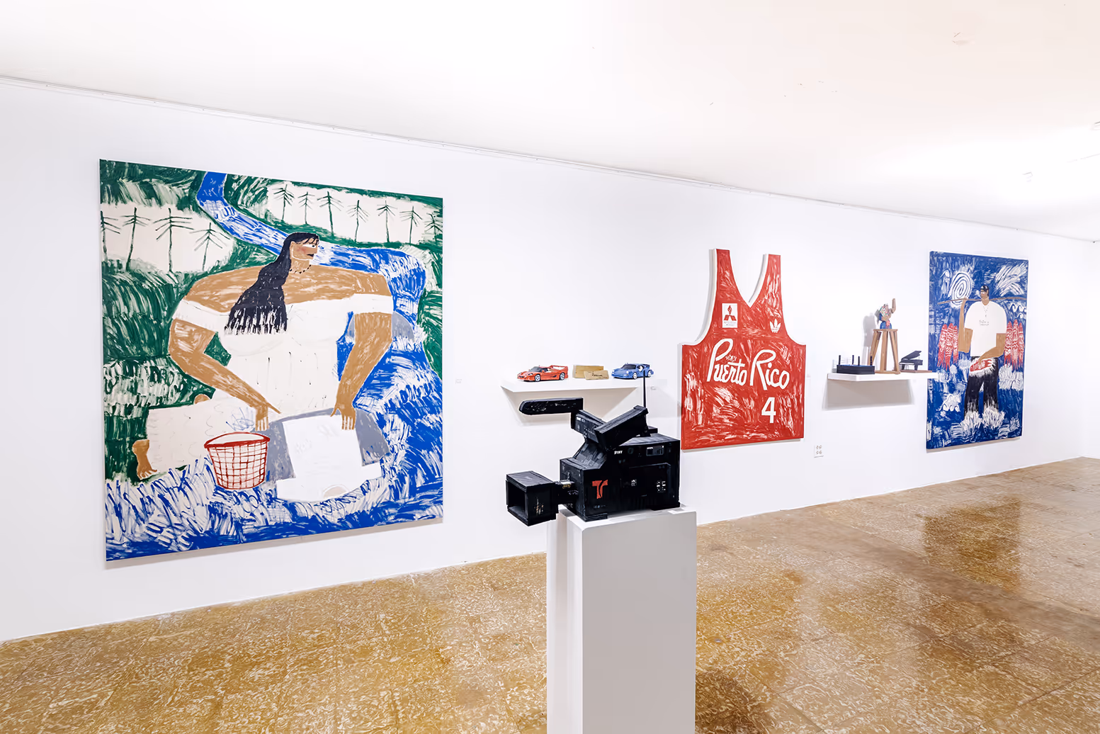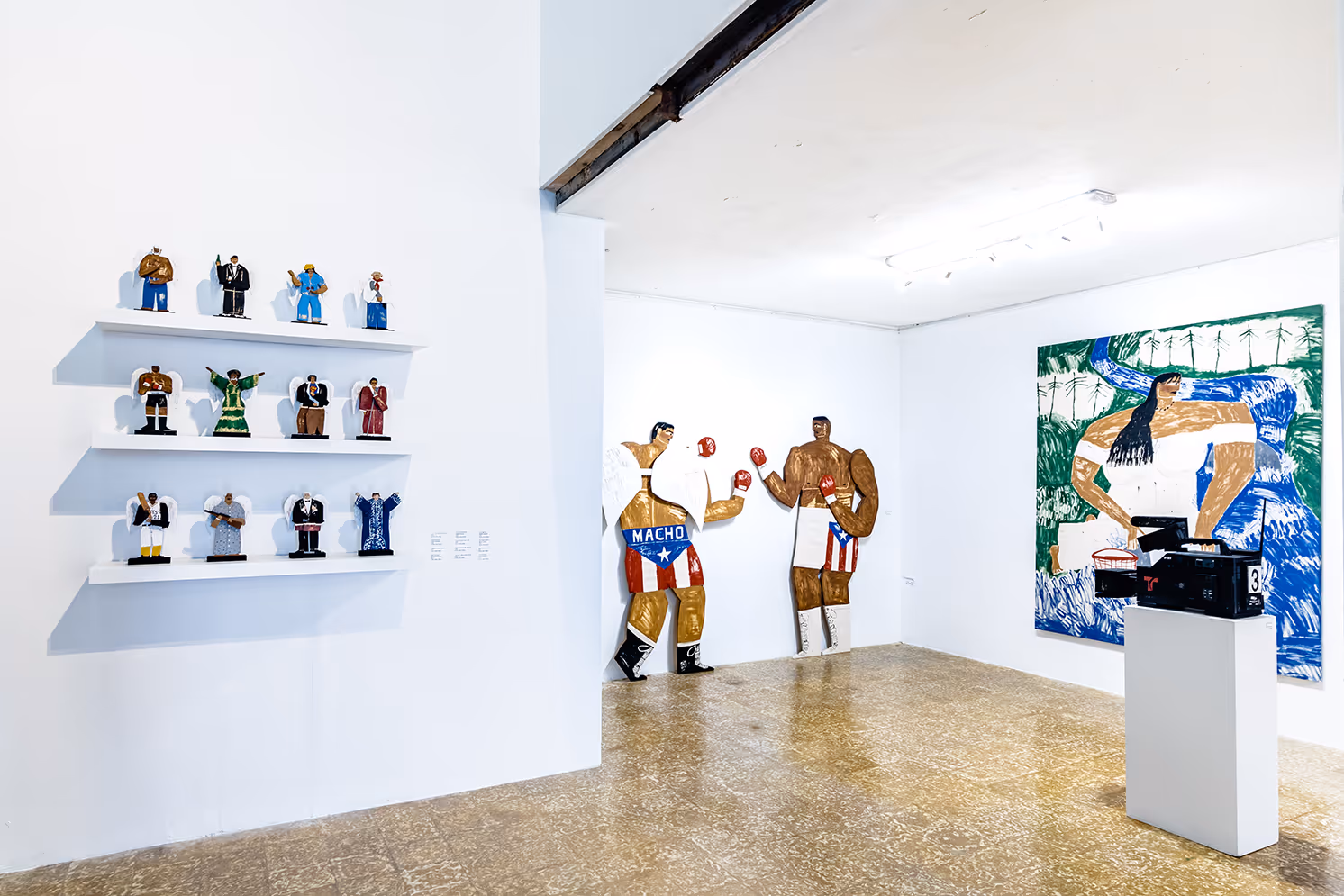 TODOPODEROSO, the solo exhibition of Joshua Nazario, takes off from this question to reinterpret the idea from a human perspective, celebrating both public figures and everyday people. Through a series of paintings and sculptures in wood and cement—materials recurring in his practice— Nazario places musicians, athletes, and workers at the feet of the divine. These figures are not sanctified by their perfection, but by their ability to resist, transform, and remain steadfast in the face of adversity. From athletes who challenged their own bodies to highlight Puerto Rico in the eyes of the world, to musicians who redefined musical history, and workers whose labor has sustained generations, TODOPODEROSO invites us to see the sacred in the everyday, the admirable in the imperfect, and the power in the common.
