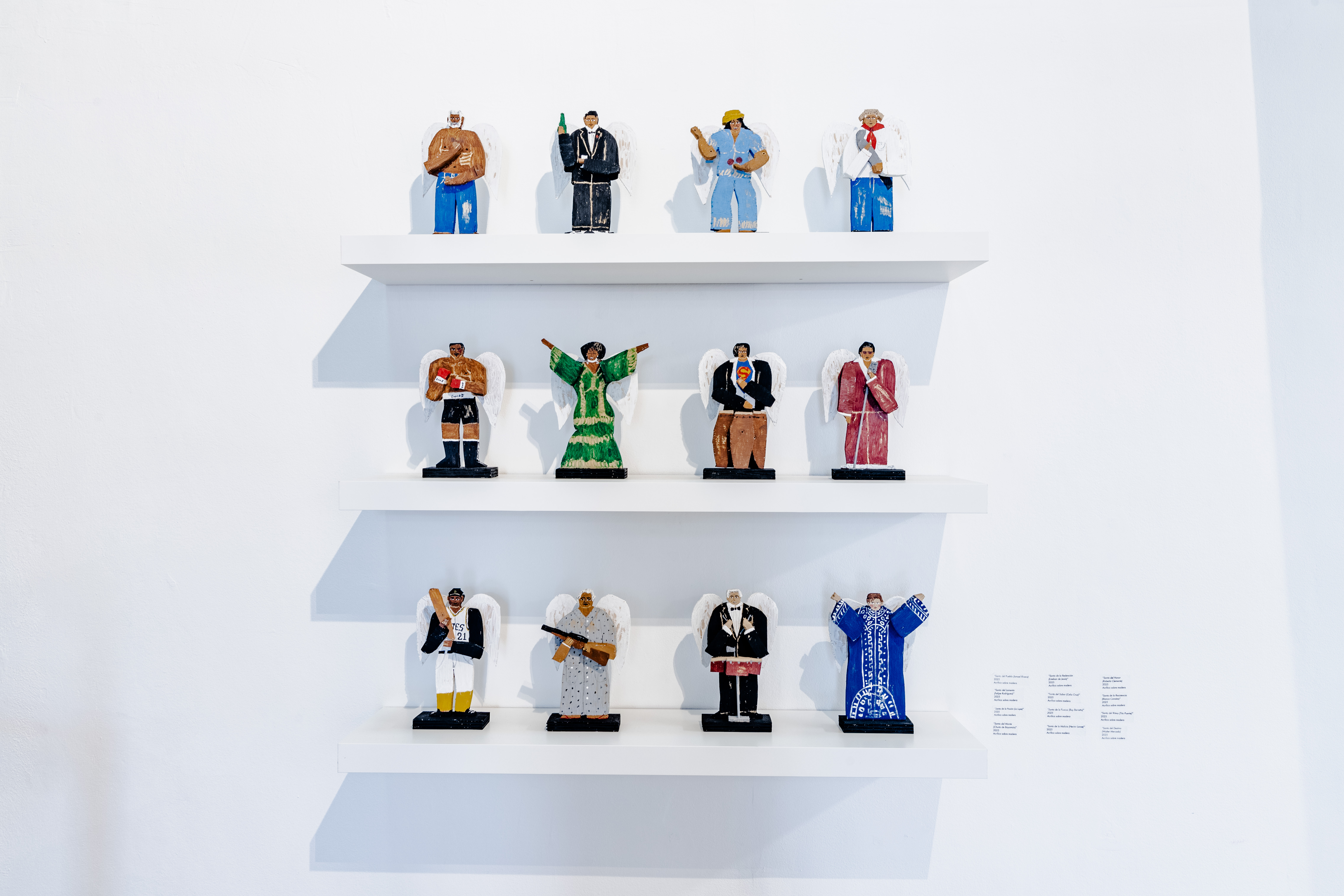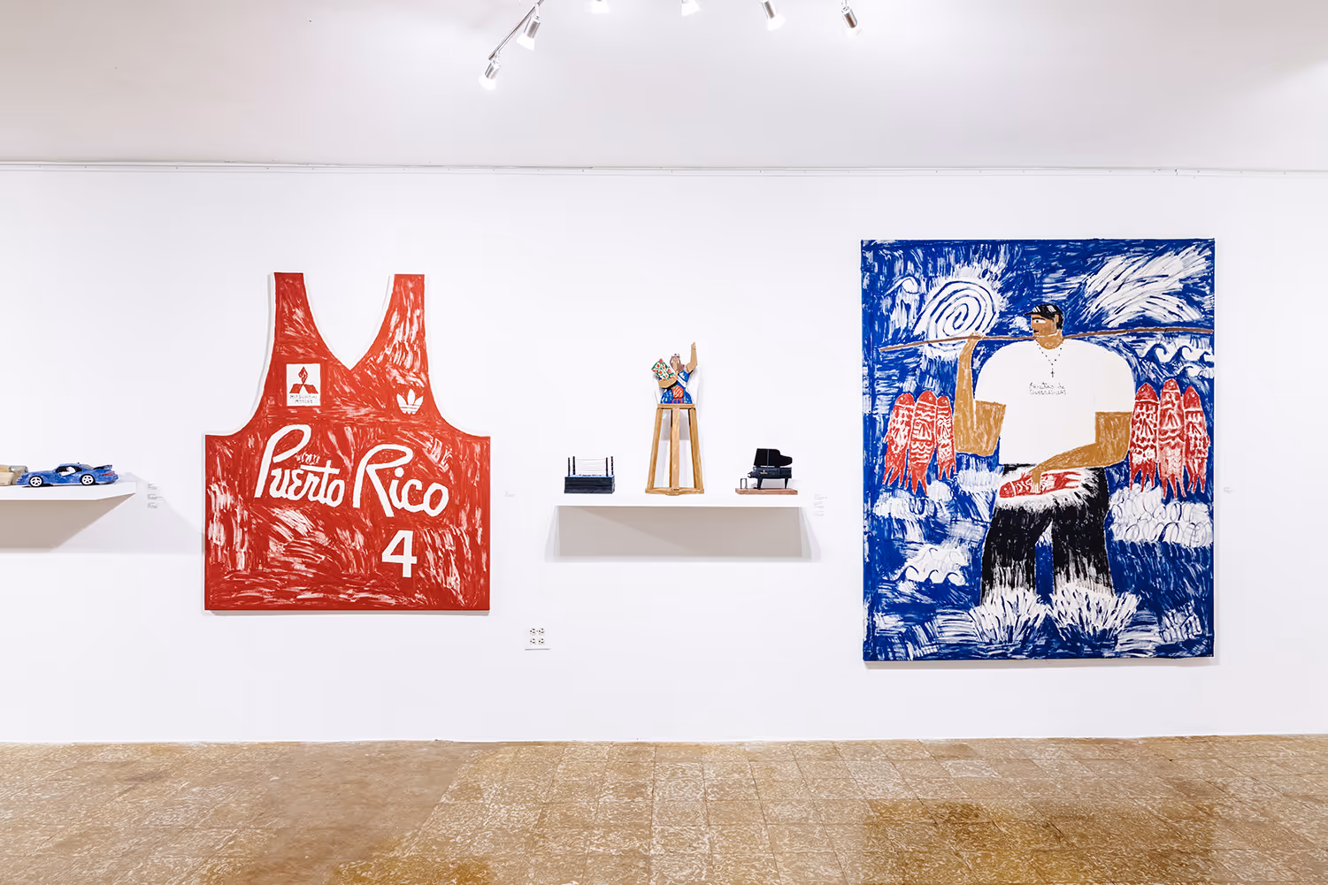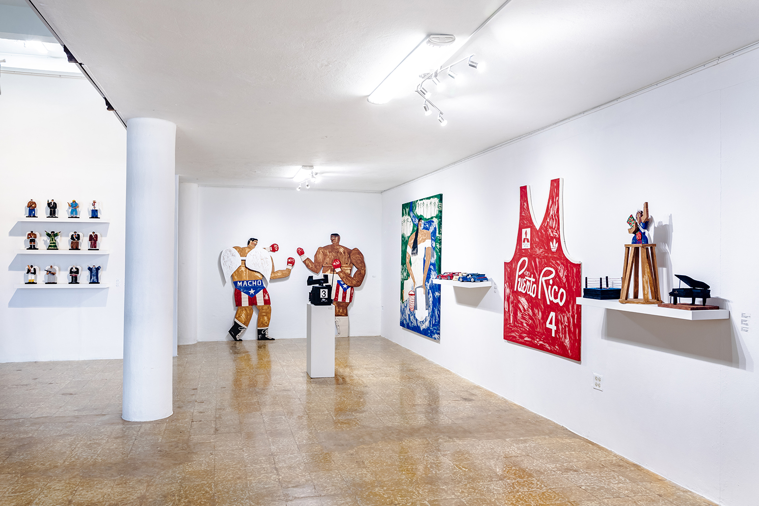 TODOPODEROSO, the solo exhibition of Joshua Nazario, takes off from this question to reinterpret the idea from a human perspective, celebrating both public figures and everyday people. Through a series of paintings and sculptures in wood and cement—materials recurring in his practice— Nazario places musicians, athletes, and workers at the feet of the divine. These figures are not sanctified by their perfection, but by their ability to resist, transform, and remain steadfast in the face of adversity. From athletes who challenged their own bodies to highlight Puerto Rico in the eyes of the world, to musicians who redefined musical history, and workers whose labor has sustained generations, TODOPODEROSO invites us to see the sacred in the everyday, the admirable in the imperfect, and the power in the common.